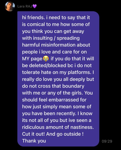 Au-delà de sa sphère personnelle, Lara a également évoqué des remarques visant son apparence physique. Des commentaires liés au corps, à l’image et à l’alimentation ont circulé, franchissant une limite que l’idole juge inacceptable.