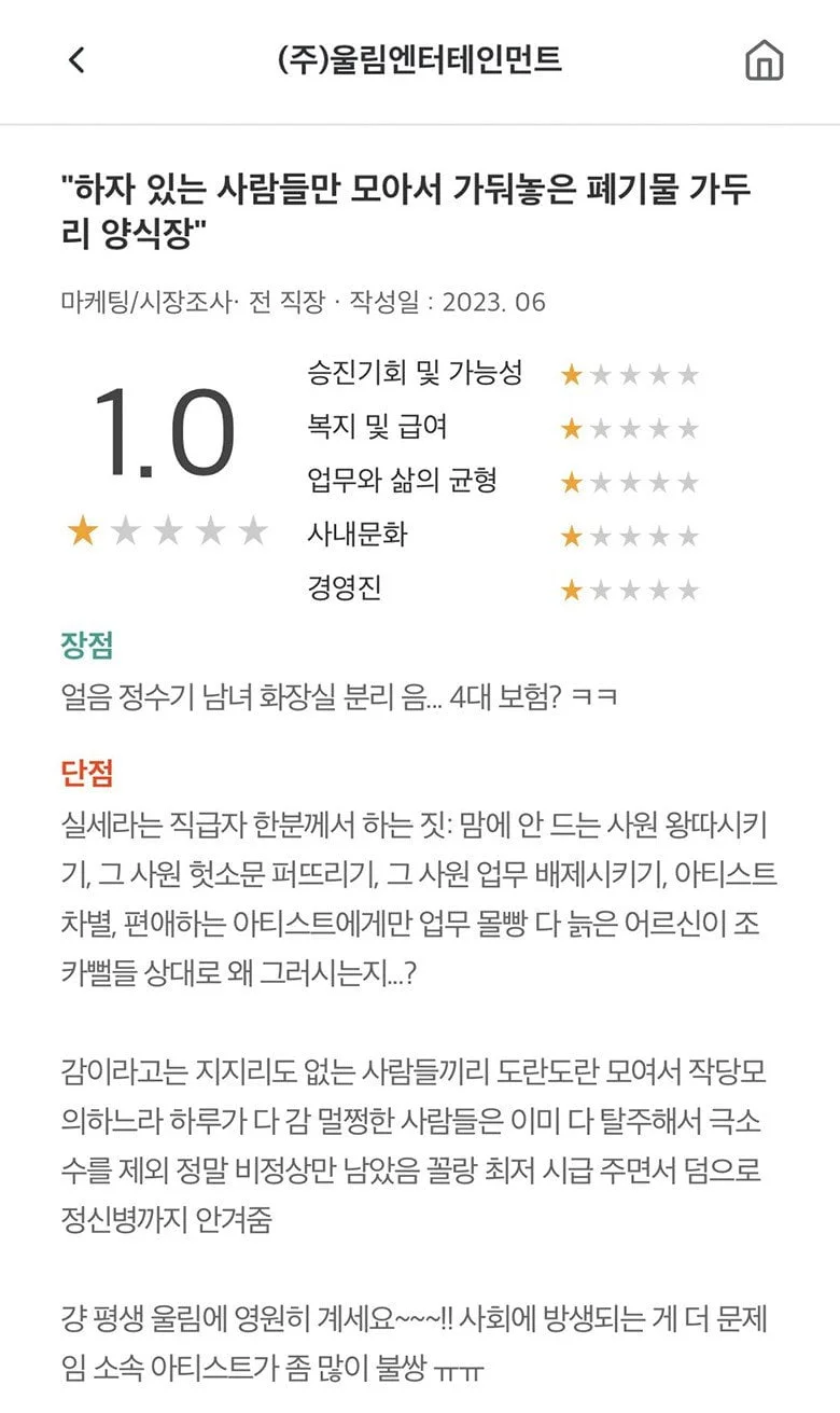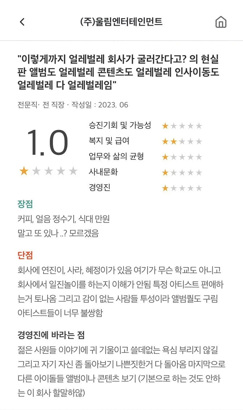 Écoutez ce que les jeunes employés ont à dire et abandonnez votre avidité. Regardez-vous en face. Si vous avez fait du tort à d’autres, cela vous reviendra. Enfin, étudiez simplement ce que font les autres entreprises de K-Pop. (Cette entreprise ne peut même pas faire les choses les plus élémentaires qu’une entreprise de K-Pop devrait faire.)