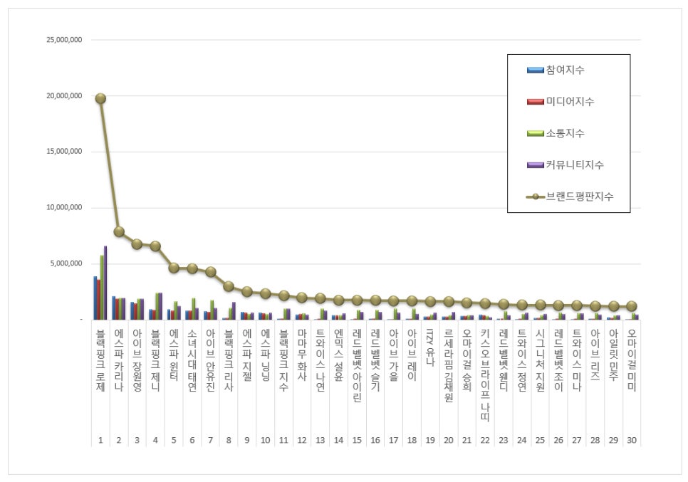 Avec un score global de 7 861 406 points, Karina a connu une augmentation spectaculaire de 86,47 % par rapport à novembre. Ses activités promotionnelles et sa présence médiatique constante ont renforcé son statut de leader au sein d’aespa et de la quatrième génération d’idols.