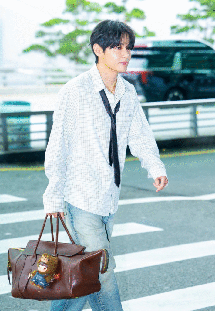 • V (BTS) a opté pour une allure chic et soignée, saluée pour sa simplicité raffinée et sa prestance.